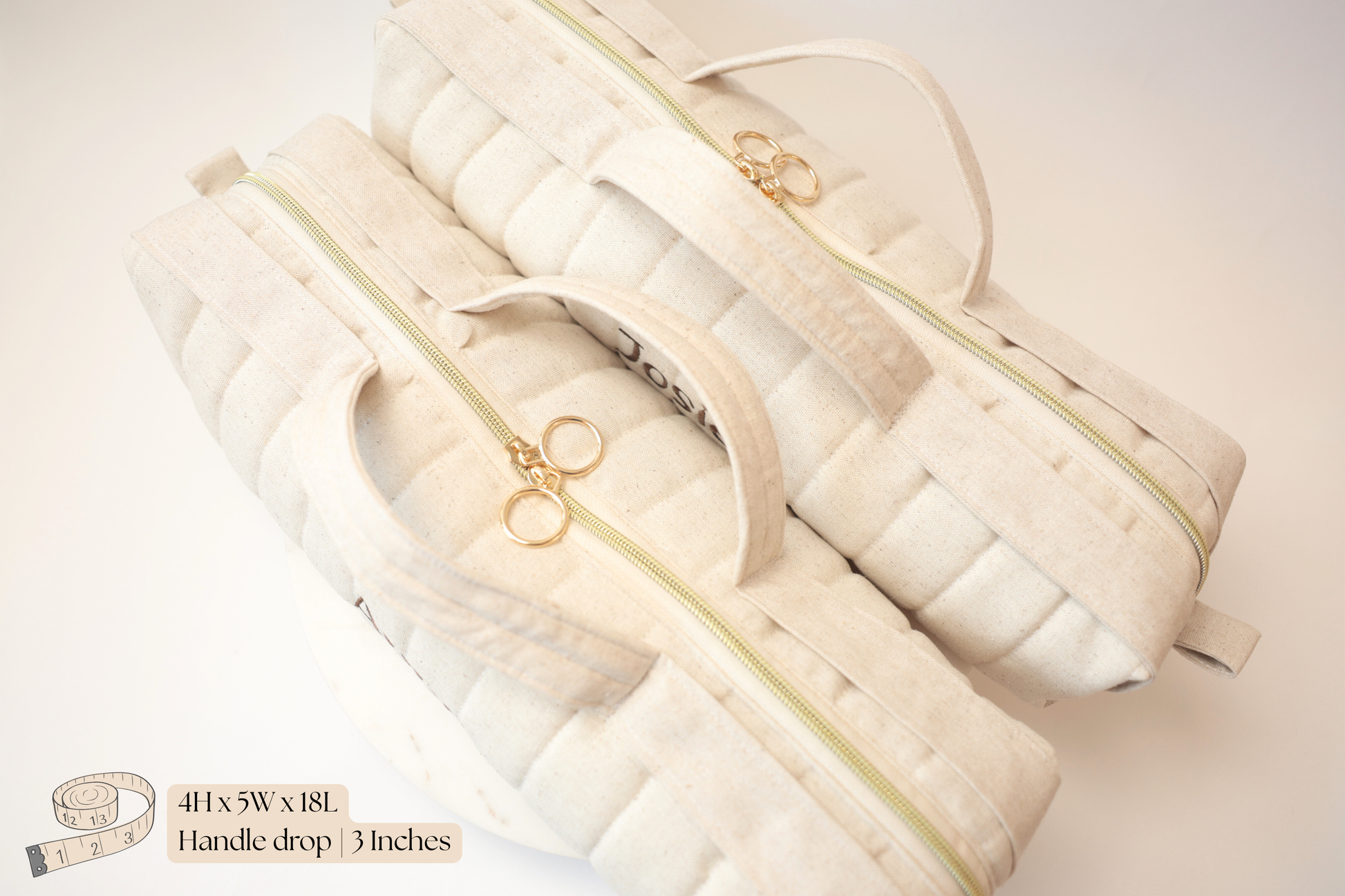 Soft linen texture, cozy quilting, and handcrafted charm come together in this Personalized Hair Tool Duffle Bag. The natural linen-blend fabric gives a warm, rustic feel, while the hand-stitched details and custom embroidery make each bag uniquely yours.